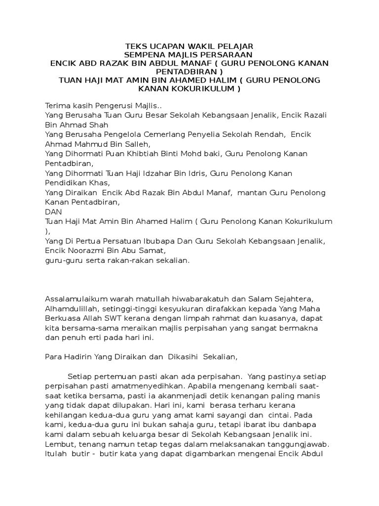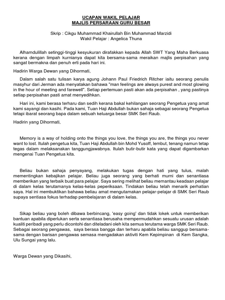 Ucapan Wakil Pelajar Persaraan Pdf